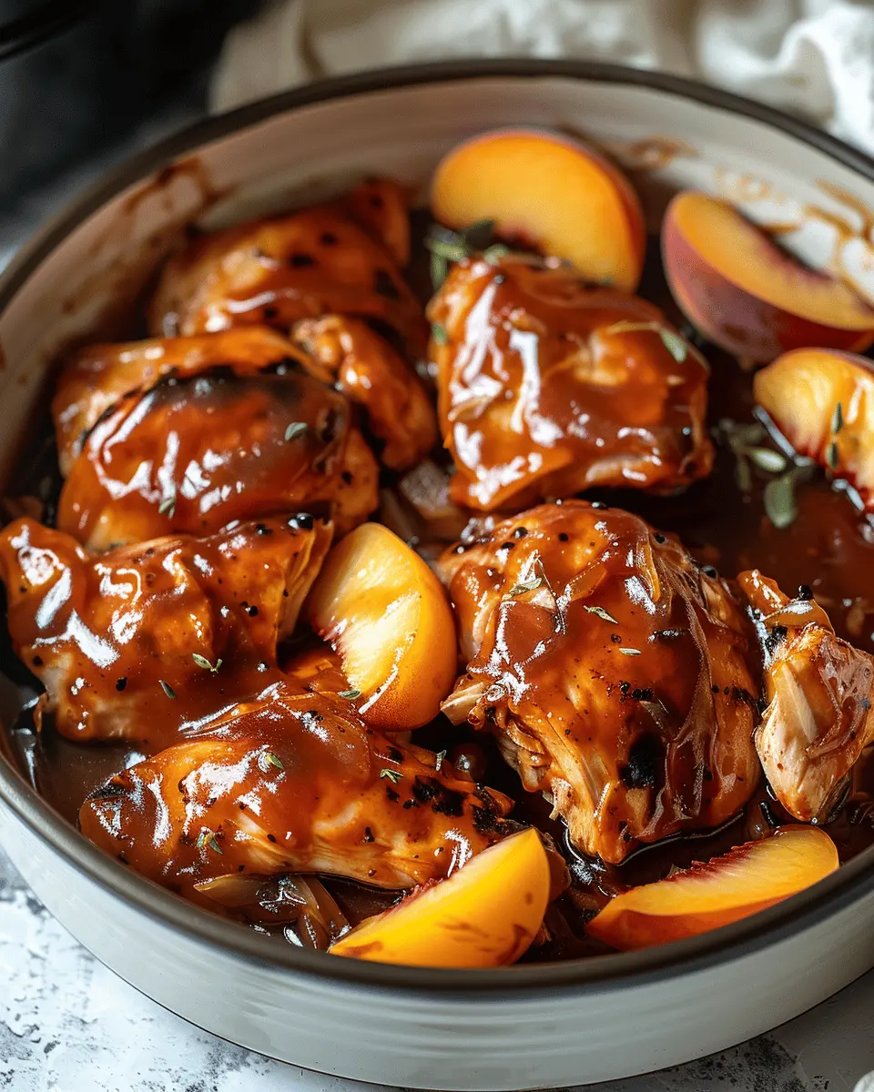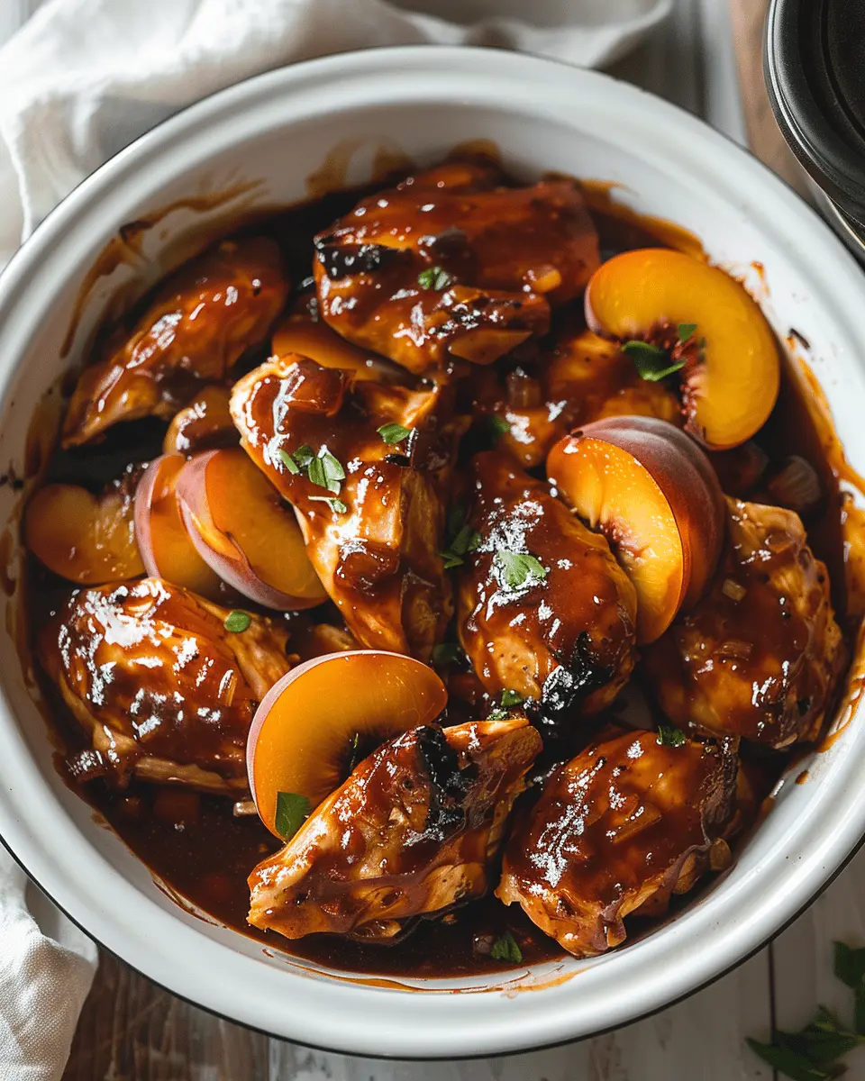 Discover the perfect dish for summer gatherings with this easy and delicious Crockpot BBQ Peach Chicken recipe.