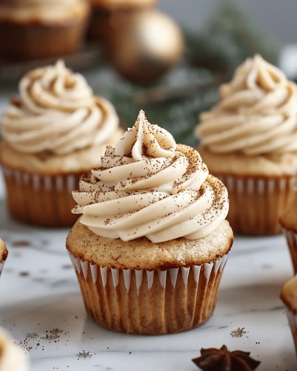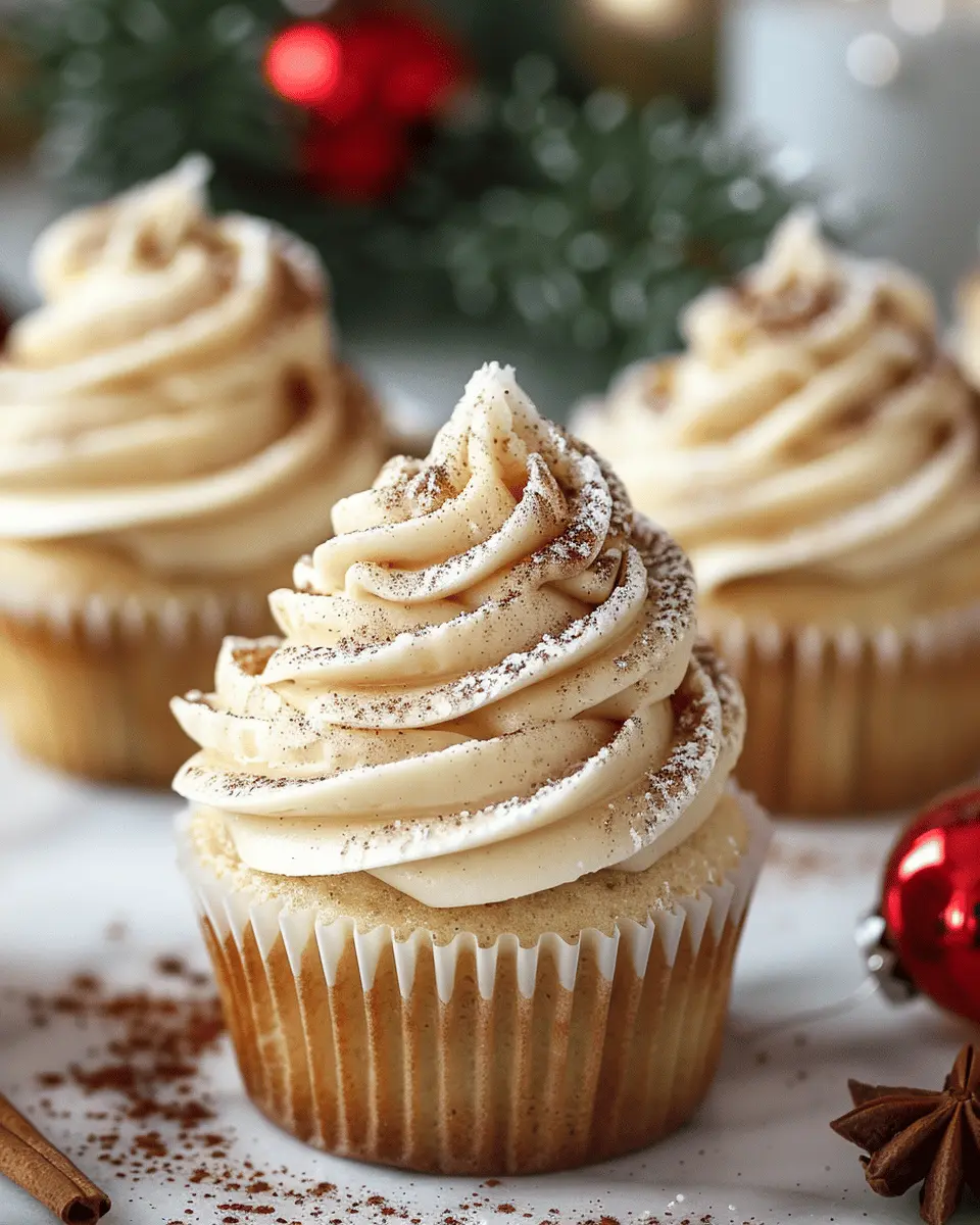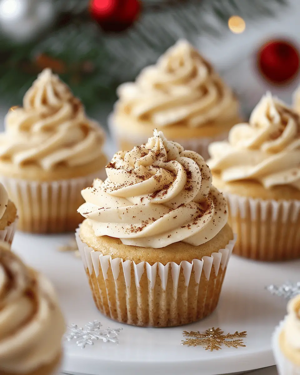 Indulge in these delicious eggnog cupcakes, perfect for the festive season.
