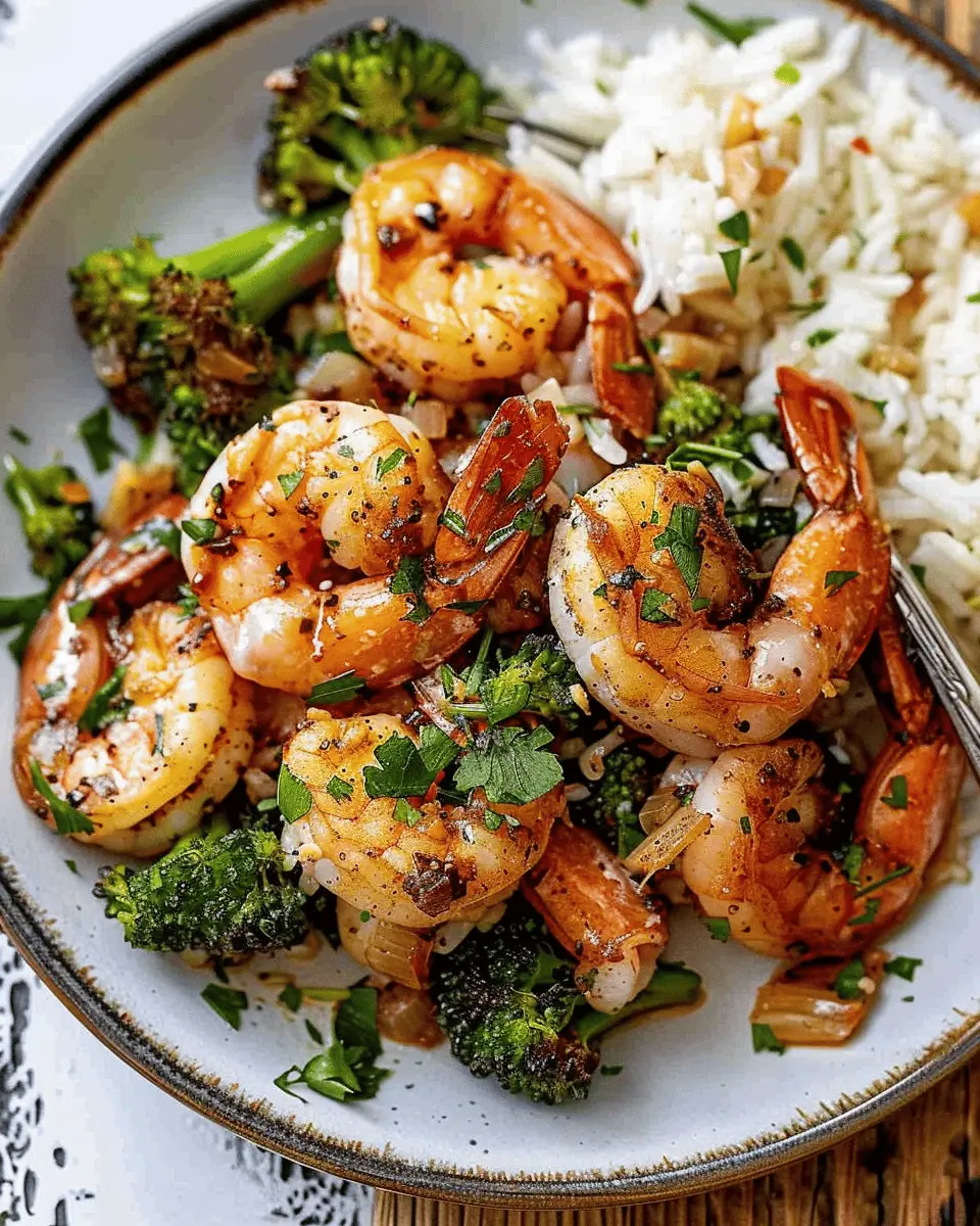 PrintGarlic Butter Shrimp with Broccoli Rice: A Quick, Indulgent Meal