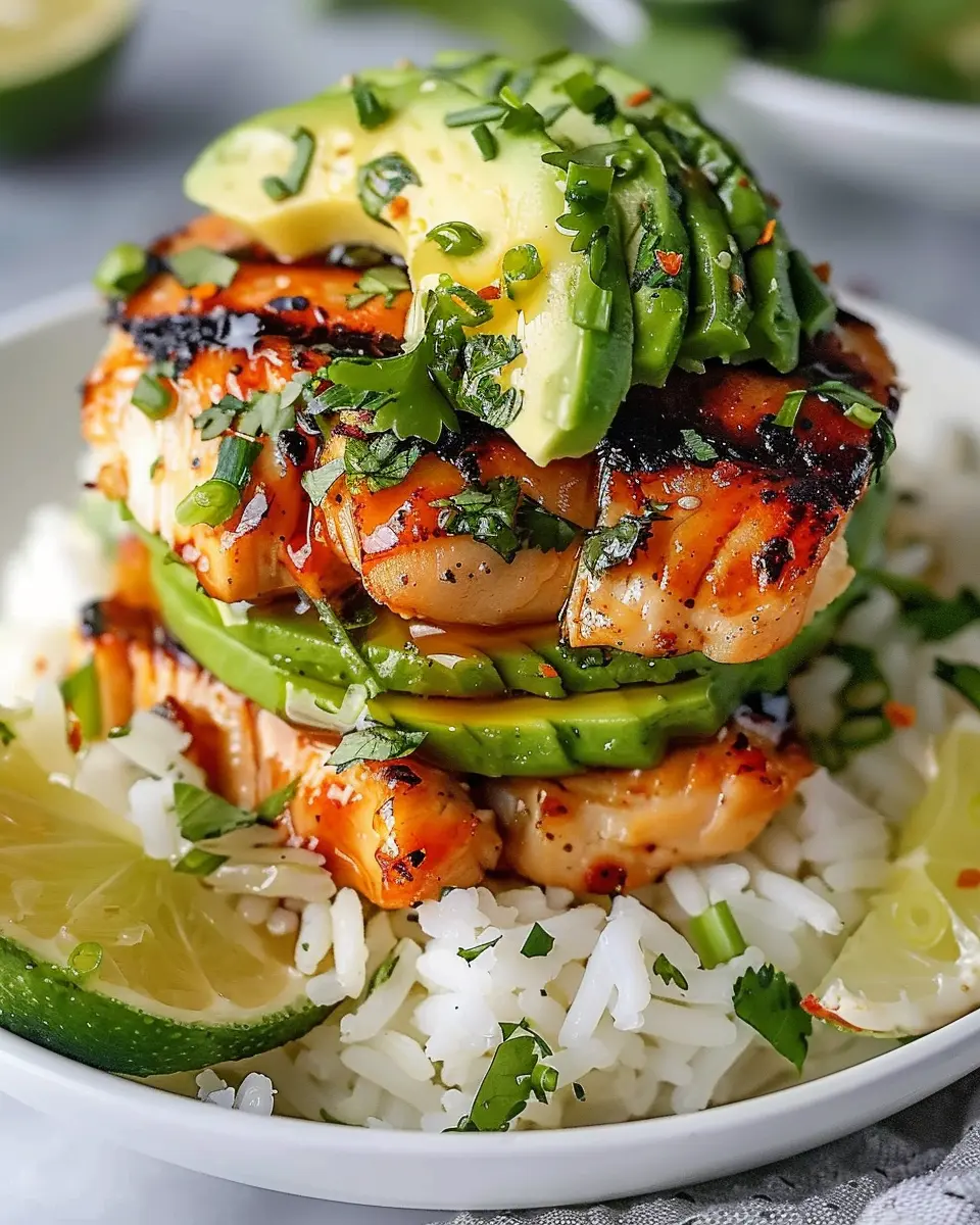 Introduction to Honey Lime Chicken Avocado Rice Stack