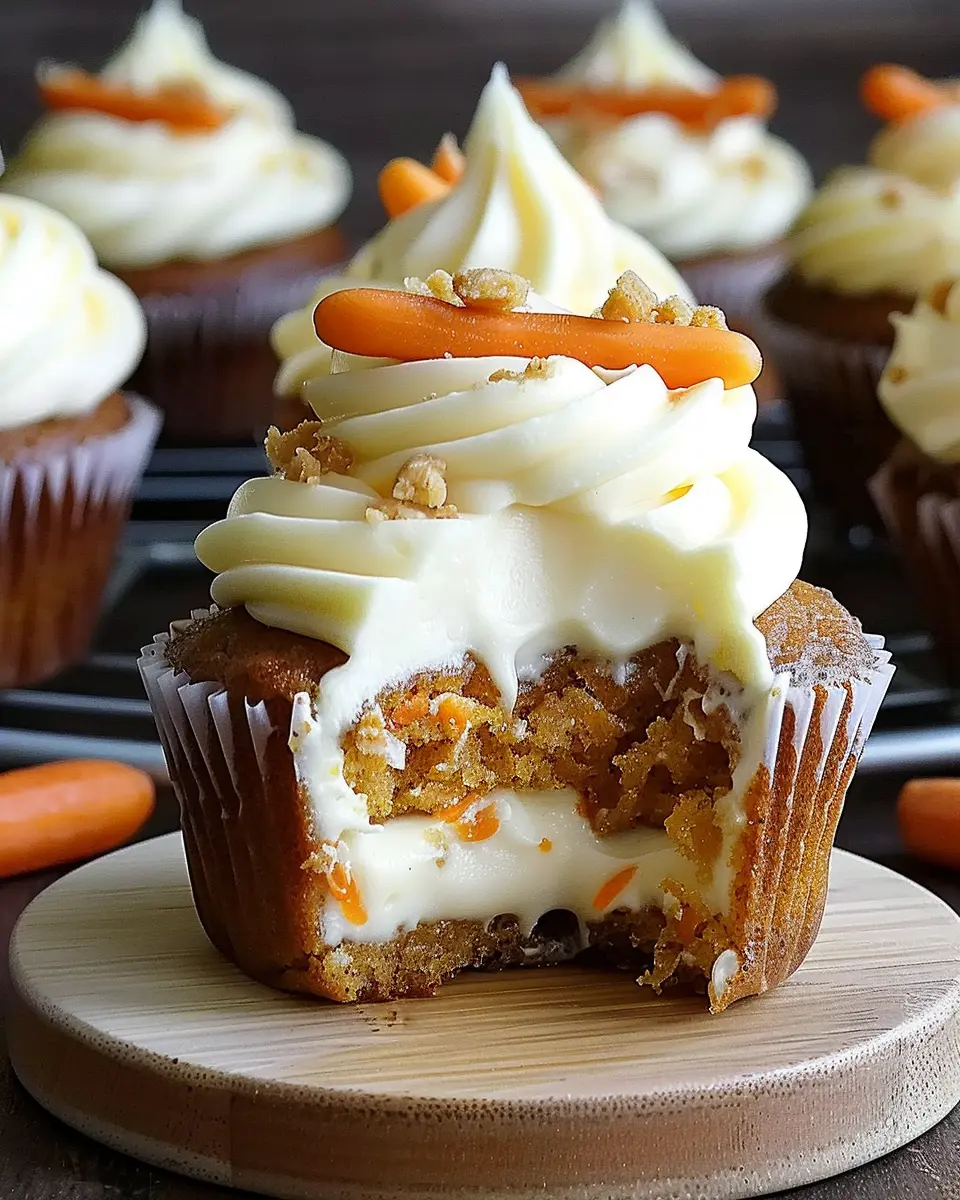 Presentation is key to dessert enjoyment. To showcase your Irresistible Carrot Cheesecake Cupcakes, place them on a whimsical cake stand adorned with colorful sprinkles or edible flowers. You could even dust the top with a sprinkle of cinnamon for that extra flair. Arrange them on a large platter with fresh carrot sticks and nuts scattered around, creating a vibrant and inviting display. This not only enhances the visual appeal but also makes them the centerpiece of your gathering.