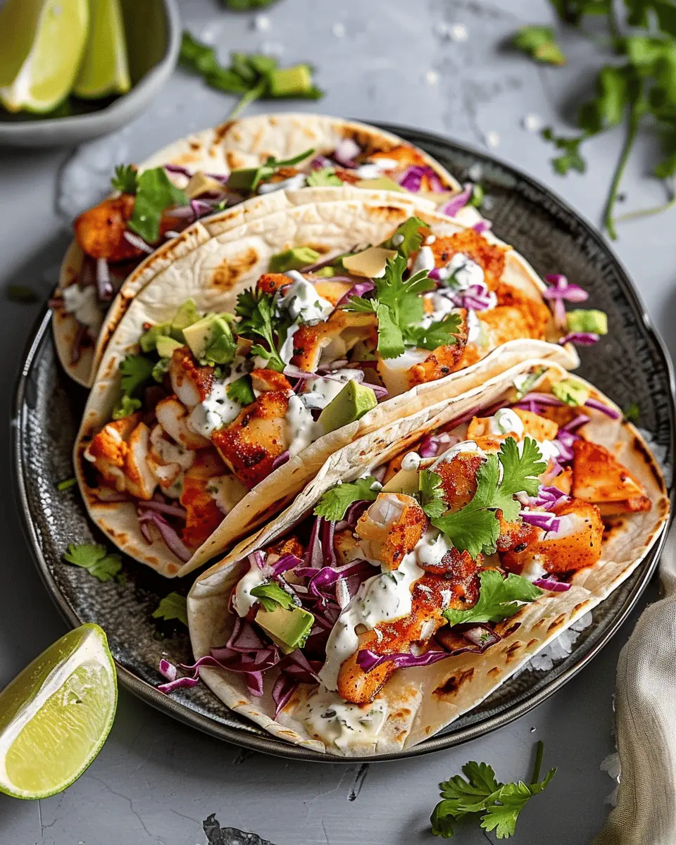 When serving your Spicy Fish Tacos, creative plating can elevate your dish from ordinary to extraordinary. Consider using colorful plates to make your food pop. Layer fresh greens like arugula or spinach, then stack your tacos on top for an appealing height. Garnish with lime wedges, diced avocados, or a sprinkle of chopped cilantro. This not only enhances visual appeal but also adds complementary flavors and nutrients.