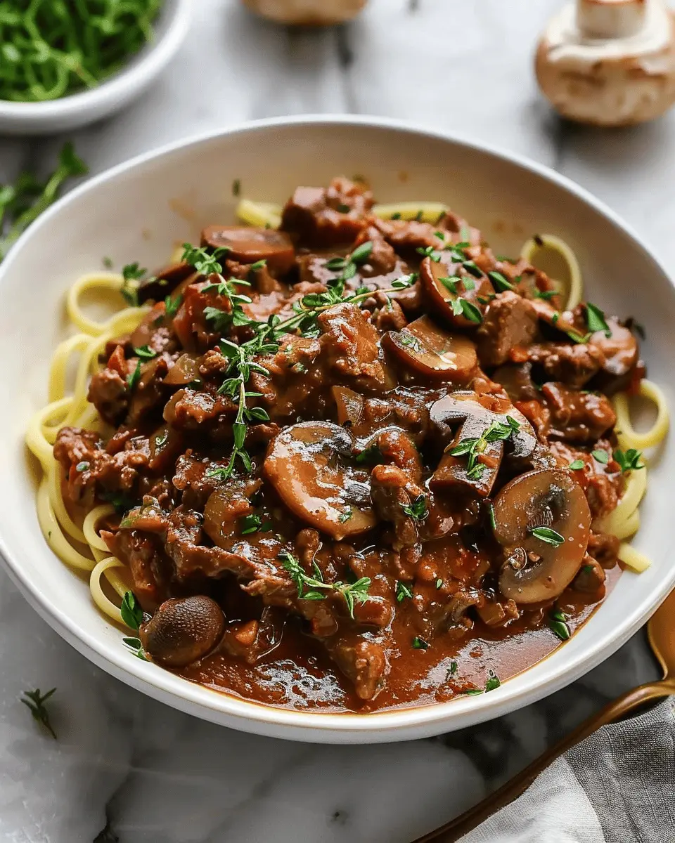 Once everything is prepped, the cooking process takes approximately 30-40 minutes. This is when the magic happens, allowing the rich flavors of beef and mushrooms to meld together beautifully.