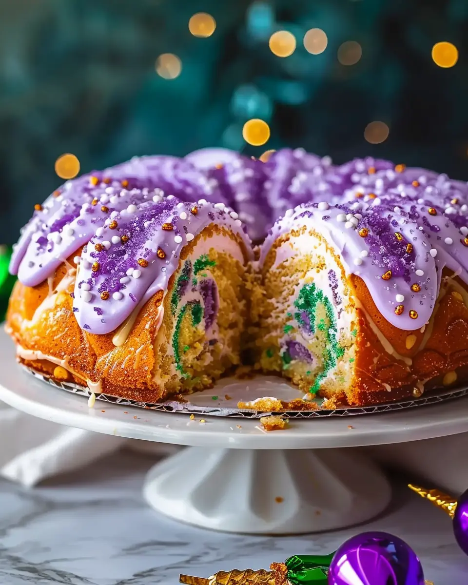 This magical Mardi Gras King Cake recipe is the perfect treat for your celebration.
