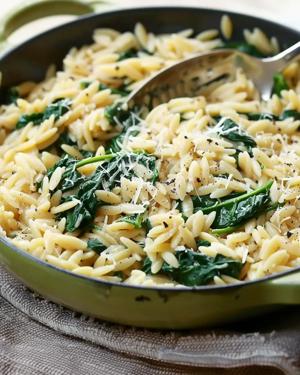 So, what makes One-Pot Spinach Orzo a must-try dish? For starters, it cleverly combines tender orzo pasta with fresh spinach and a sprinkle of Parmesan, creating an irresistible blend of creaminess and nutrition. Spinach is not just a vibrant green addition; itโ€™s packed with vitamins and minerals. In fact, according to the USDA, a single cup of raw spinach delivers over 50% of your daily Vitamin A and Vitamin K needs! Not too shabby for a weeknight meal, right?