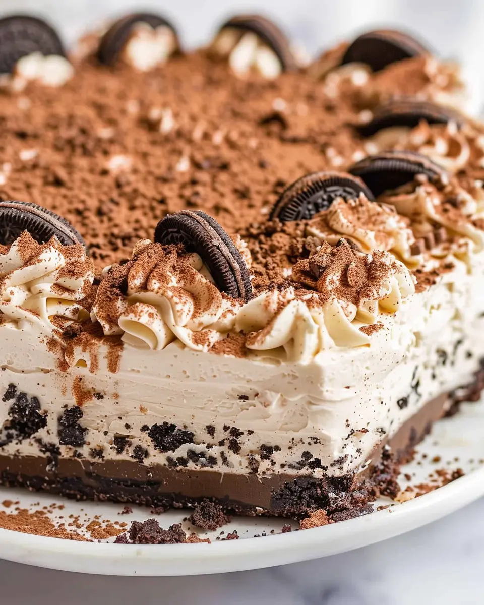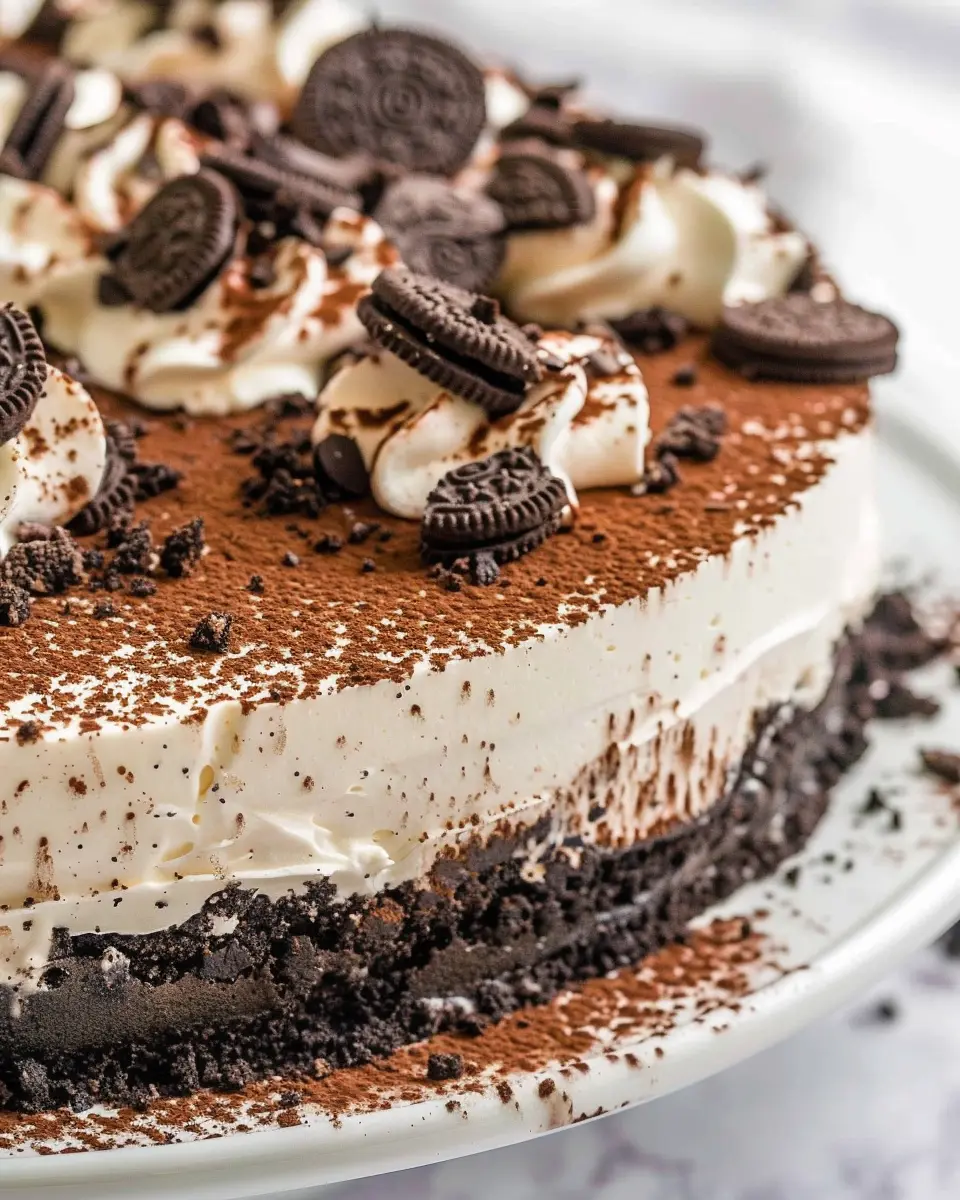 Presentation is key! Making your Oreo Mousse Cake visually appealing can enhance the dining experience. Try serving it in individual glass cups, layered with whipped cream and crushed Oreo cookies for an inviting look. You could also add a sprinkle of cocoa powder or chocolate shavings on top for that gourmet finish. For a fun twist, create an Oreo-inspired dessert board with mini cakes, some fresh fruit, and decorative mint leaves. It not only looks impressive but invites guests to dig in and enjoy!