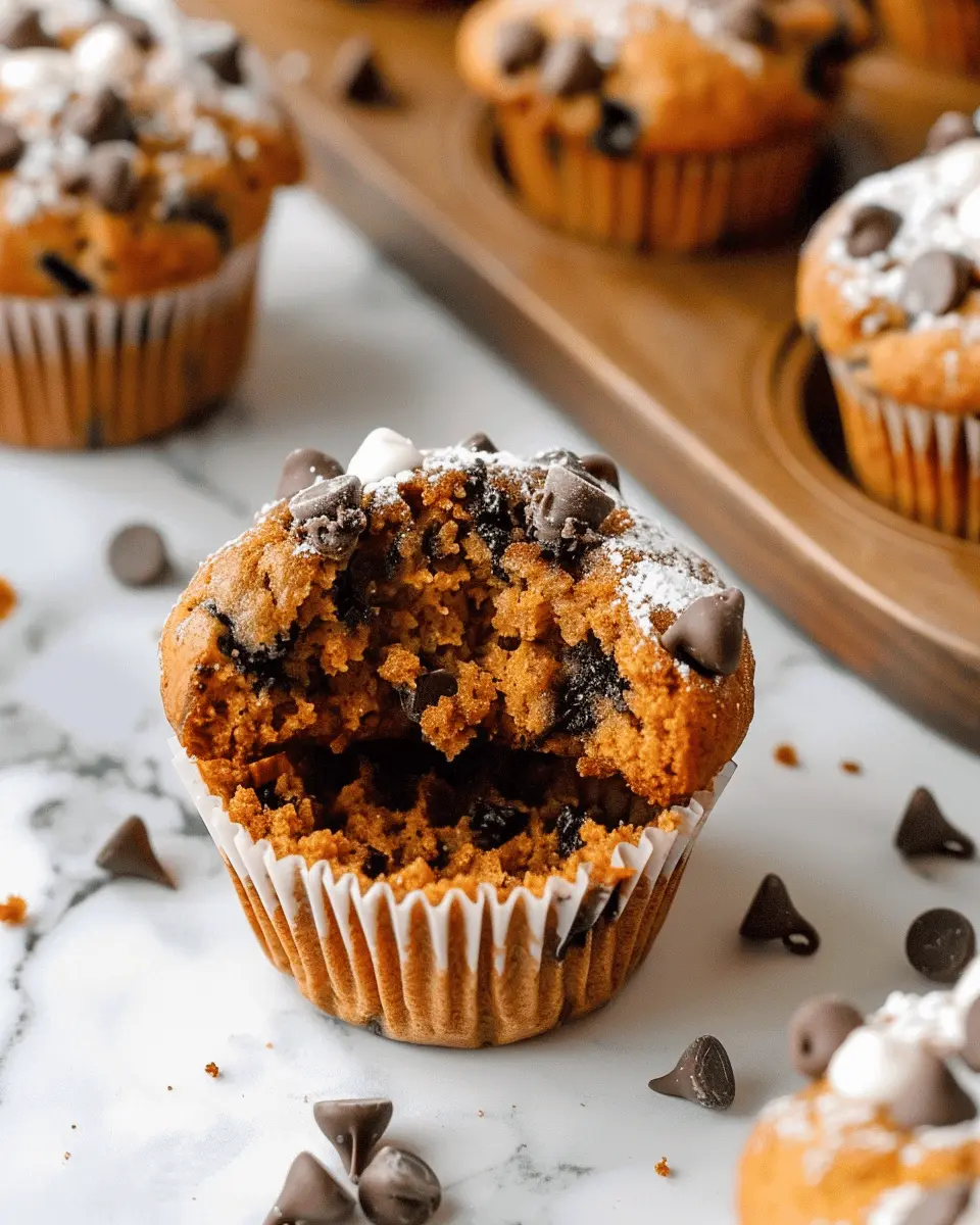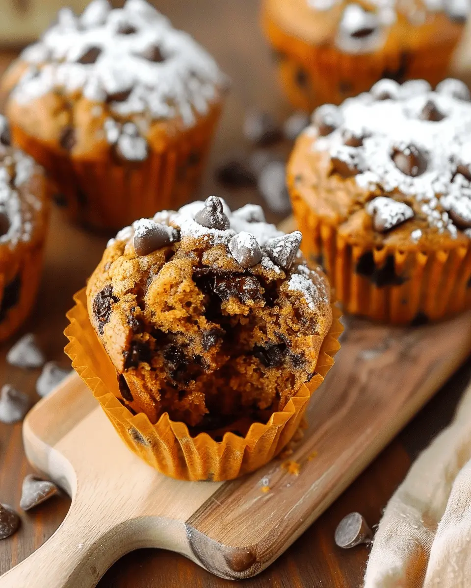 Deliciously moist pumpkin chocolate chip muffins that combine the warmth of pumpkin spices with the sweetness of chocolate chips, creating a comforting treat perfect for any occasion.