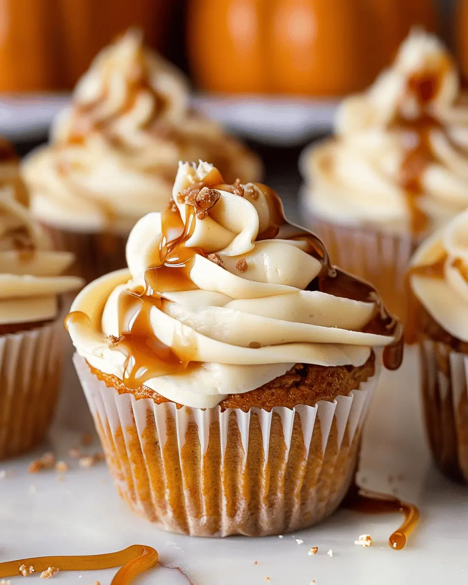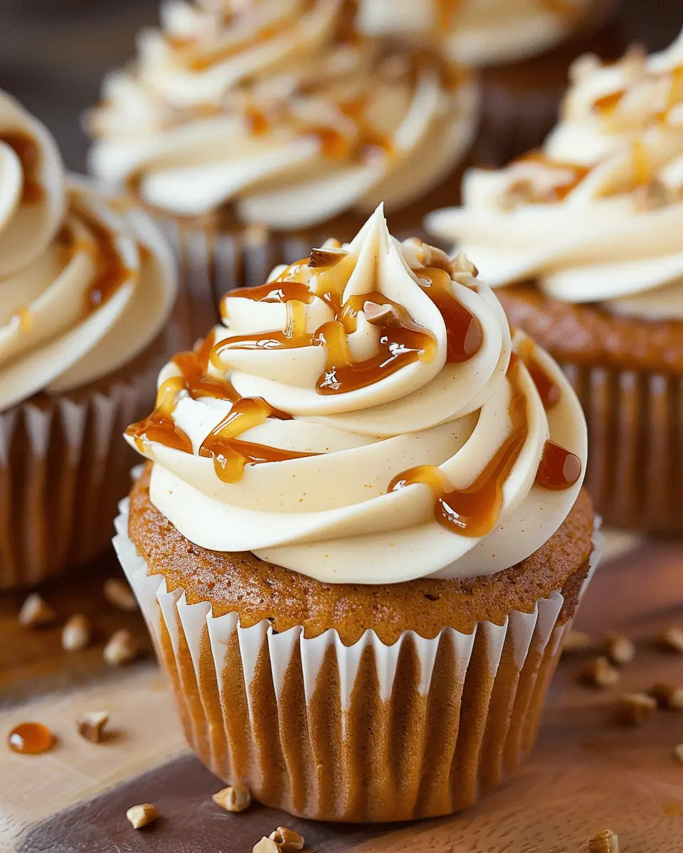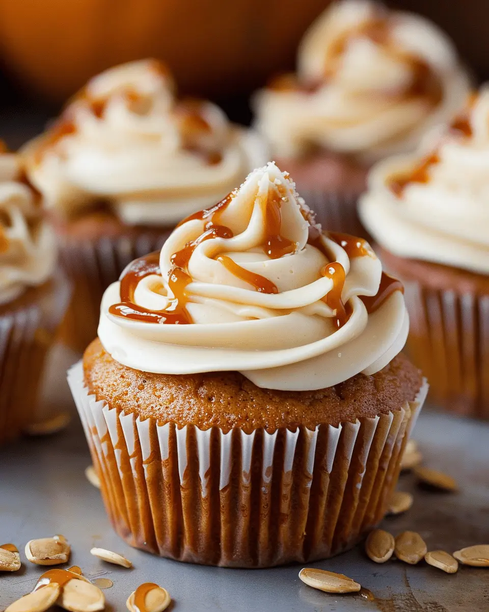 Deliciously spiced pumpkin cupcakes topped with a rich salted caramel cream cheese frosting, perfect for fall.