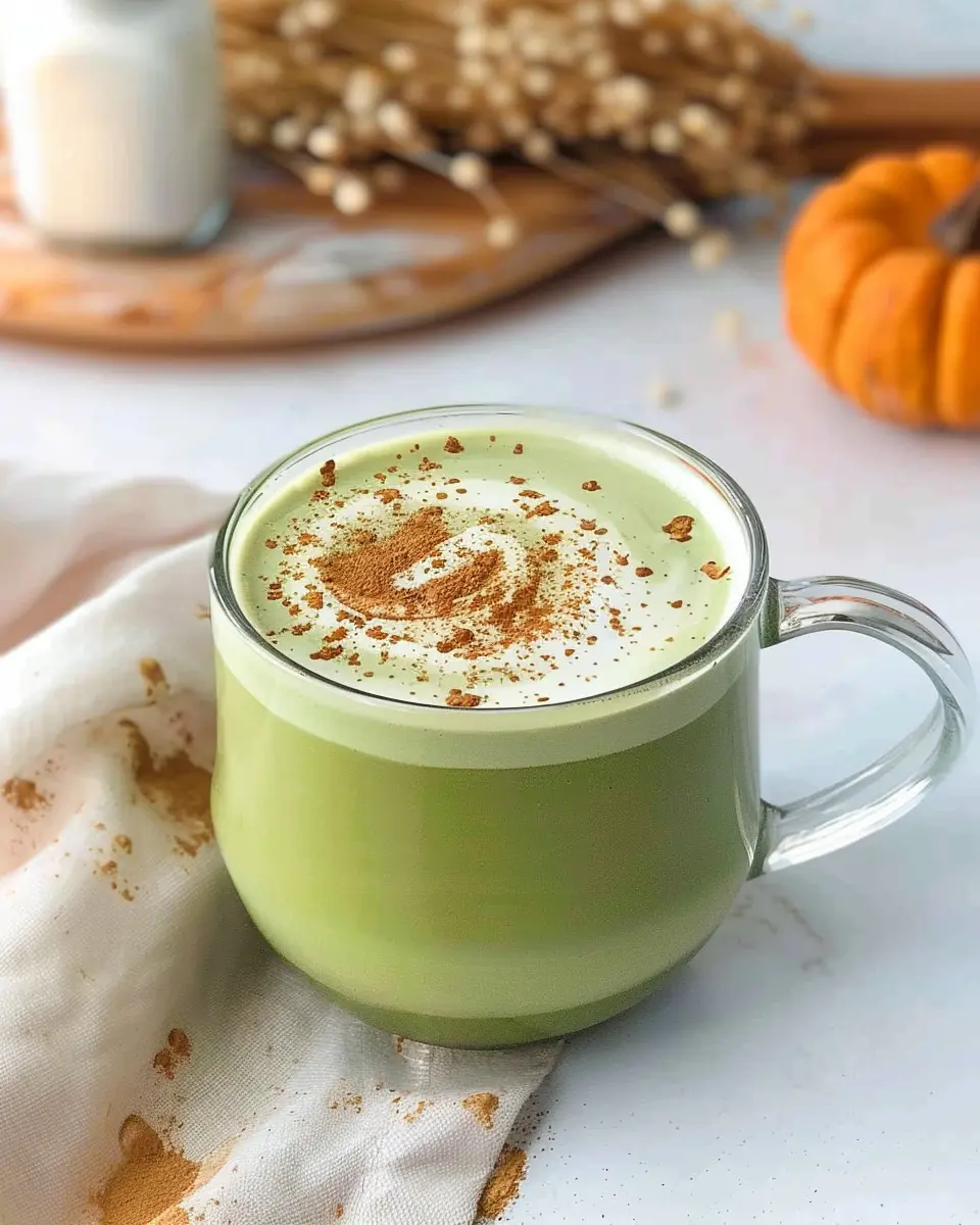 A warm and creamy beverage that combines the flavors of pumpkin and matcha, perfect for a cozy treat.