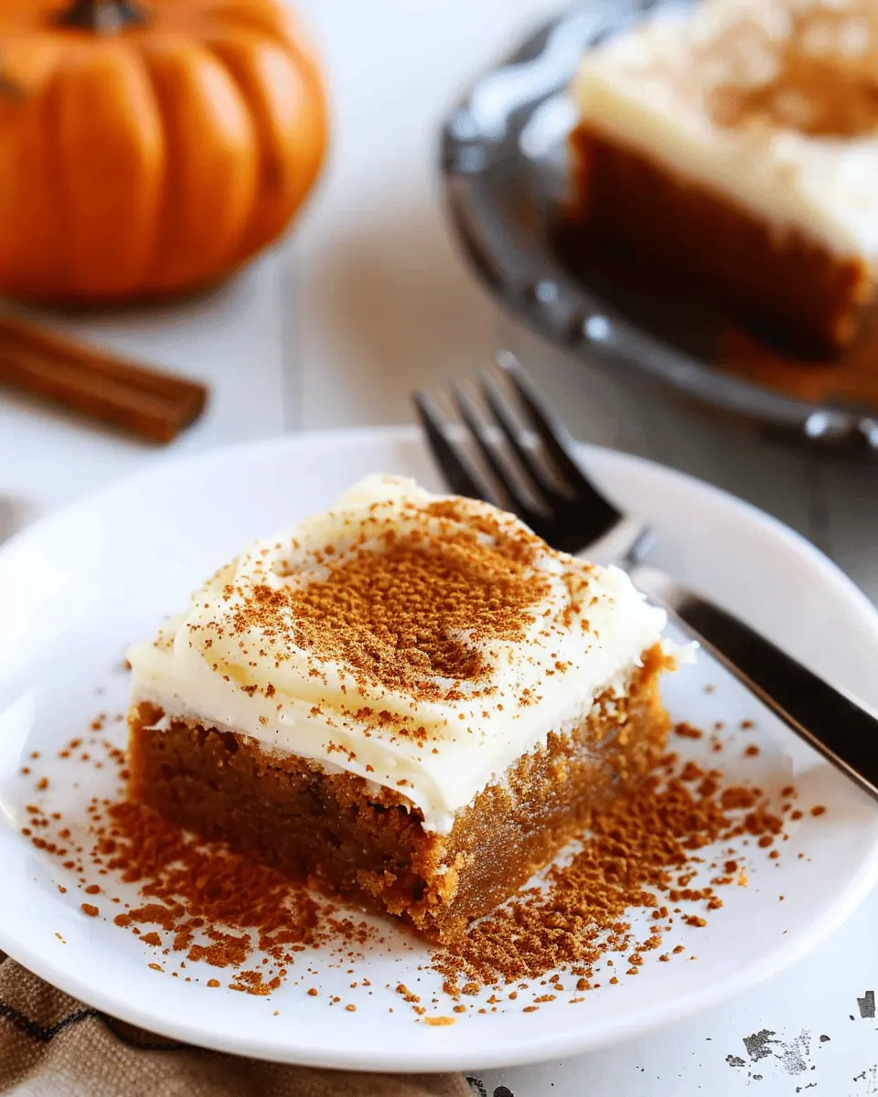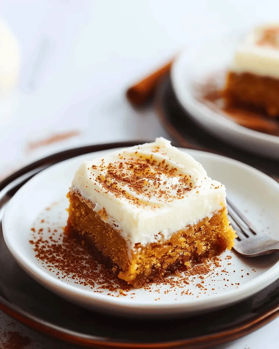 Presentation can elevate any quick recipe ideas like these bars. Serve your pumpkin treats on a rustic wooden platter, garnished with a sprinkle of pumpkin seeds or a drizzle of extra cream cheese frosting for added flair. You could also layer them on a vibrant plate, accentuating their warm orange hue, making them not only delicious but eye-catching as well.