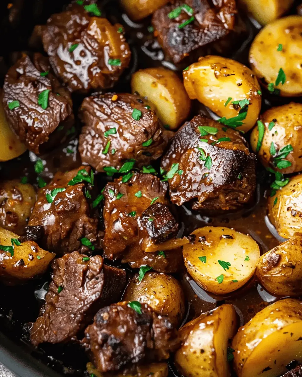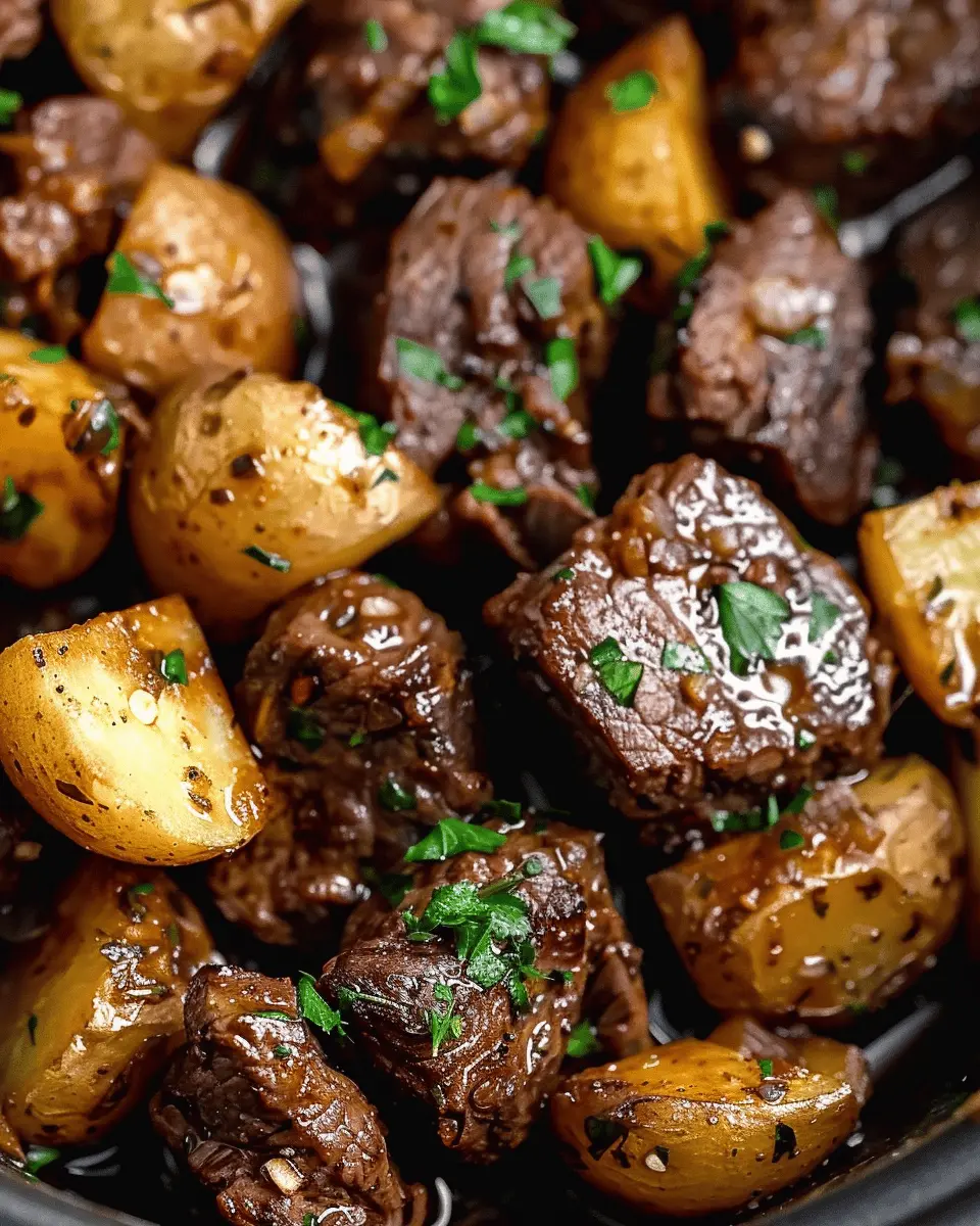 PrintSlow Cooker Garlic Butter Beef Bites: Easy Comfort with Potatoes