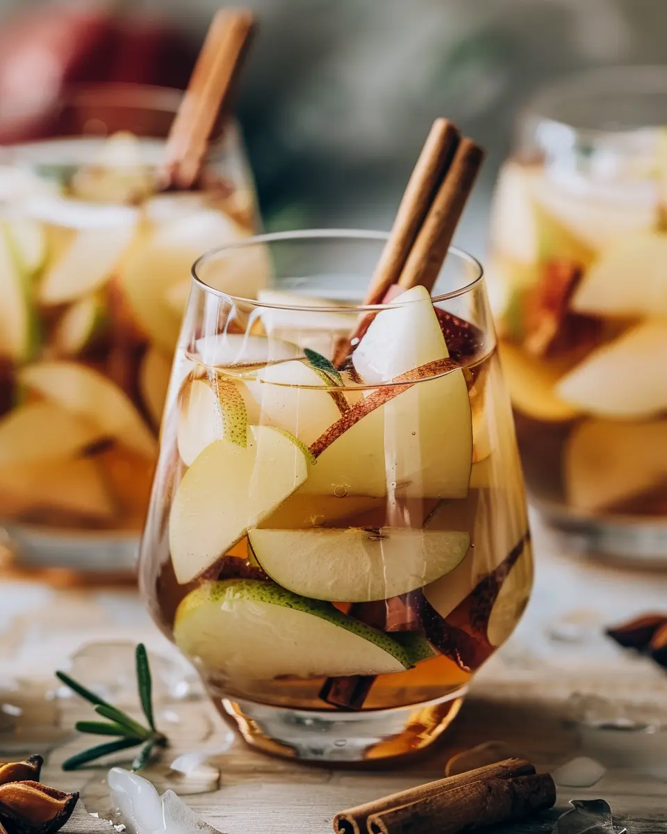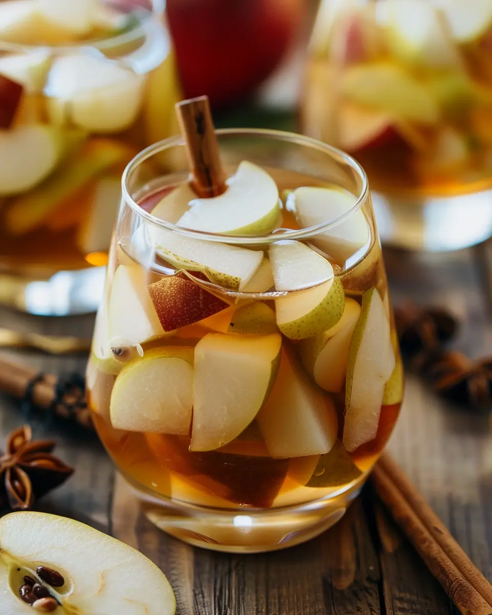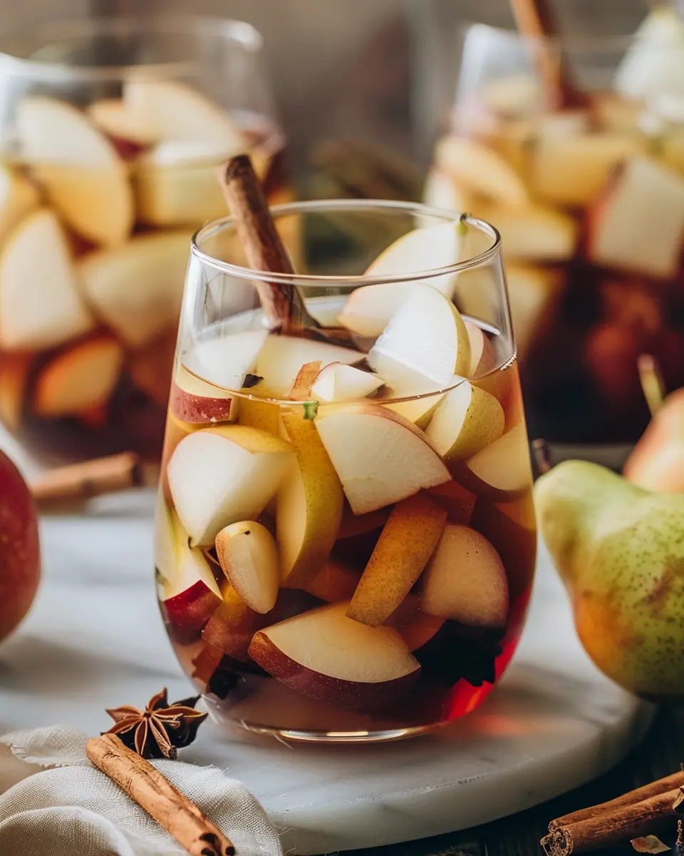 - Sliced Fruits: Pear slices, along with citrus (like oranges or lemons), enhance the drink’s fruity profile.