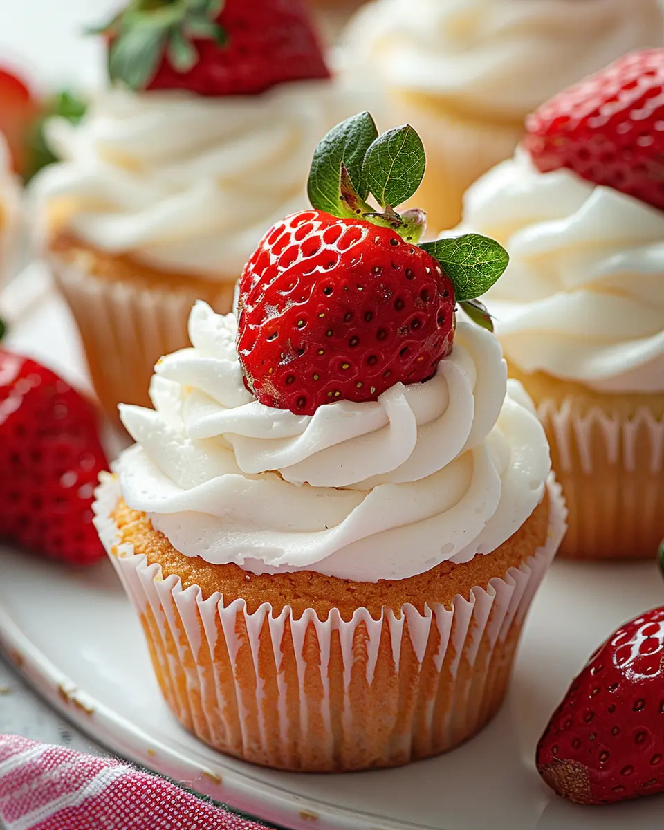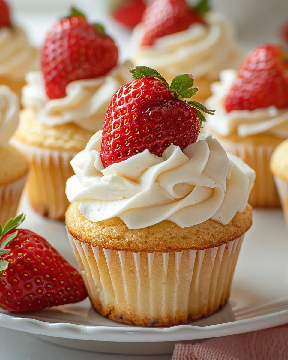- Fresh Strawberries: Top each cupcake with a whole or halved strawberry for a vibrant touch.