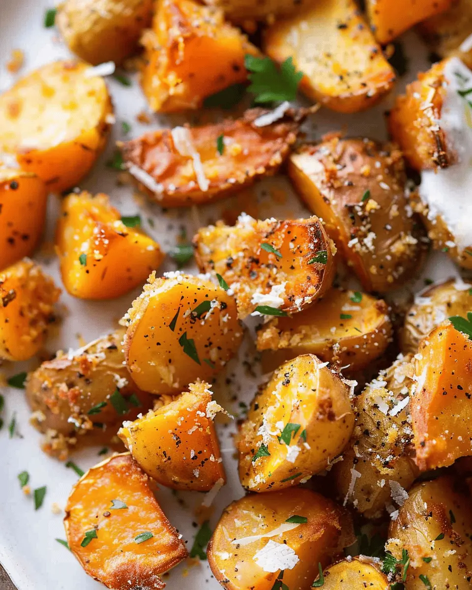 PrintSweet Potato Recipes: Crispy Roasted Parmesan Potatoes Delight