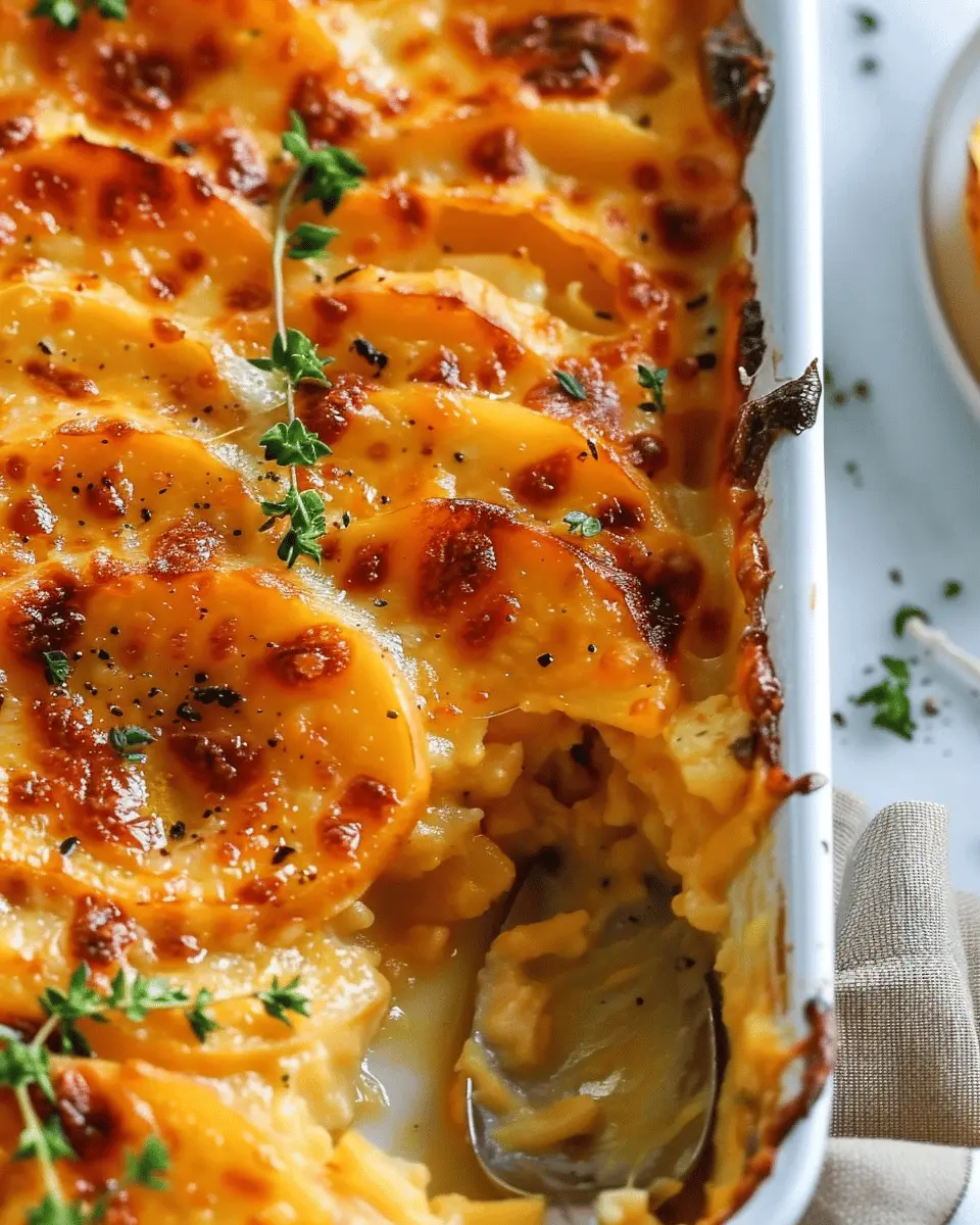 PrintSweet Potato Recipes: Dad’s Indulgent Creamy Cheesy Au Gratin Potatoes