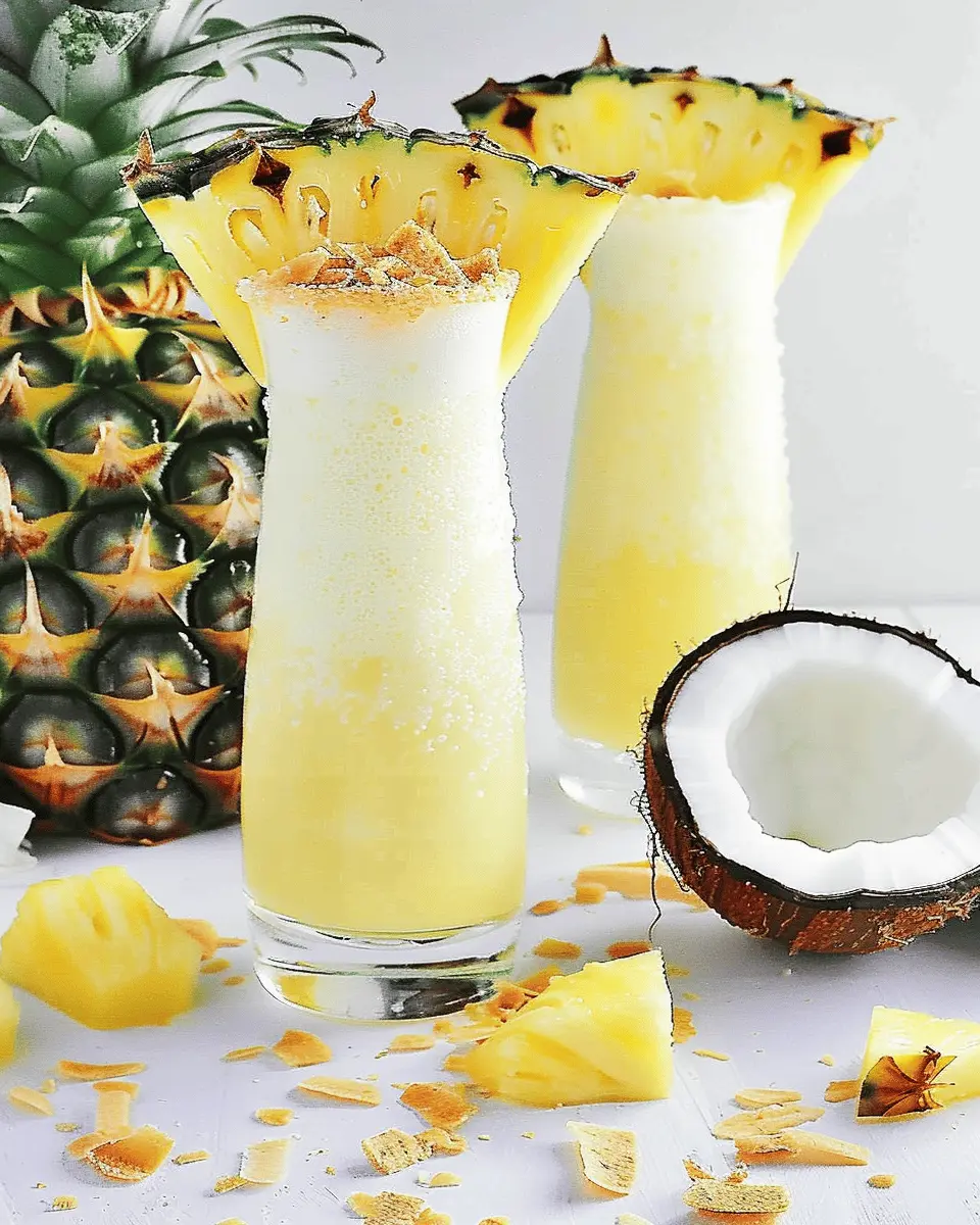 • Nourishing Qualities: Pineapples are packed with vitamins and enzymes, particularly bromelain, which aids in digestion. Coconut, rich in hydration and electrolytes, is perfect for keeping you refreshed. Together, they make a drink that’s as healthy as it is delicious.