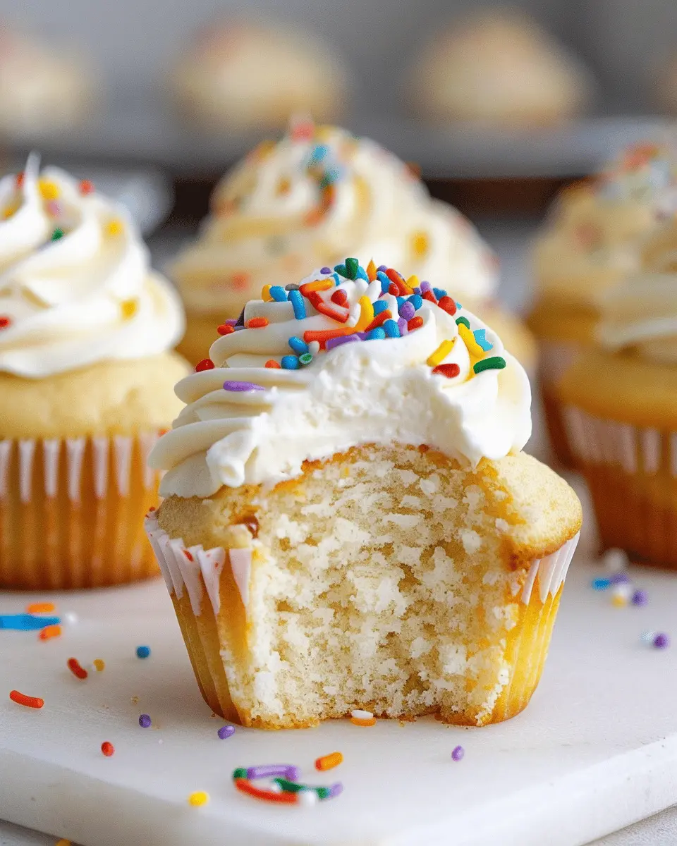 These vanilla birthday cupcakes are the perfect sweet treat for any celebration, offering a delightful balance of flavor and texture.